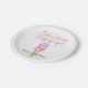 Whimsical Eis Thema Brautparty Papiertafel mit Aquarellbild von rosa und lila Eisschleifen auf einem Waffelkonus. Im Text steht: "Sie wurde aufgefangen!" Ideal für ein Brautparty oder einen Polterabend im Sommer.