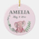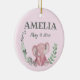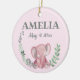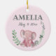 Rosa Elefant mit Blumendesign Keramik Ornament mit anpassbarer Hintergrundfarbe und Text.