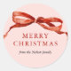 Rosa Elegant Watercolor Red Bow Weihnachtsfeiertag Klassischer Rundsticker mit einem schönen Aquarellrot-Bogen.