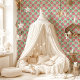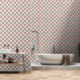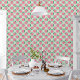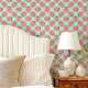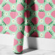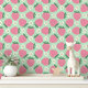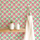 Rosa Erdbeeren und Blüten auf Minzgrün Tapete