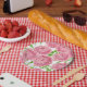 Pinkfarbene, mit Aquarellfarben auf Papier gestrichene Bauern. Muster in Fotoshop gemacht.