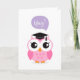 Rosa Eule mit Abschluss, die gratulieren Karte
