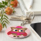 Rosa Eule mit rosa Scarf Button-Schlüsselanhänger Schlüsselanhänger
