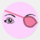 Diese T - Shirt und andere Gegenstände werden mit einer stilisierten Grafik eines Gesichts mit einer lakarosa Augenklappe bedruckt.