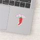 Ein roter und scharfer Pfefferkarikaturencharakter. Originelles Design mit rosa Text und Hintergrund. Diese speziellen Vinyl-Aufkleber können als Etiketten auf Gläsern, Flaschen, Geschenkpackungen und vieles mehr verwendet werden! Dekoration für alle Fische, die Sie sich vorstellen können!