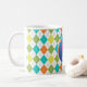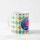 Rosa Fische auf buntem Rauten-Muster Tasse
