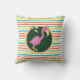 Rosa Flamingo auf hellen Regenbogenstreifen Kissen