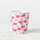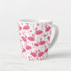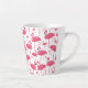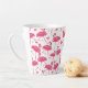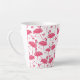 Charmante Latte-Tasse mit einem sich wiederholenden Muster von rosa Flamingo-Vögeln in verschiedenen Posen, Set vor einem knusprigen weißen Hintergrund. Die sanften rosa Farbtöne schaffen eine spielerische und elegante Ästhetik. Ideal für diejenigen, die skurrile, naturlich inspiriert Designs mit einer Touch von Eleganz Liebe. Ideal, um dem Alltag, der Wohngestaltung oder den Accessoires eine fröhliche, flamingo-thematische Atmosphäre zu verleihen. Dieses reizvolle Design zelebriert die Schönheit der Flamingos und des künstlerischen Stils. Editieren Sie dieses Stück im Zazzle-Editor, um es Ihrem Stil anzupassen und einen lebendigen, vogelinspiriert Flair in jede Umgebung zu bringen. ©️ Rosemarie Guieb