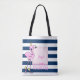 Rosa Flamingo auf marineblauen Streifen.