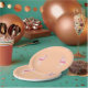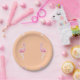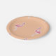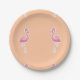 Niedliches stehend rosa Flamingo auf hellorangefarbenem Hintergrund.
