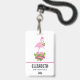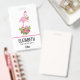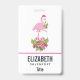 Rosa Flamingo in Weihnachtsmannmütze mit Candy Can Ausweis
