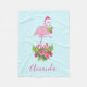 Eine personalisierte Decke mit einem tropischen Thema Weihnachtsbramingo mit einer rosa Weihnachtsmannmütze. Unter seinen Füßen befindet sich ein Bonbonbons mit hübschen tropischen Blume und rosa Beeren. Ein Gezwitscher der Heiligen auf der Brust.