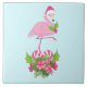 Rosa Flamingo in Weihnachtsmannmütze mit Candy Can Fliese