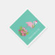 Papier Servietten mit einem tropischen Thema Weihnachtsbramingo mit einer rosa Weihnachtsmannmütze. Unter seinen Füßen befindet sich ein Bonbonbons mit hübschen tropischen Blume und rosa Beeren. Ein Gezwitscher der Heiligen auf der Brust.