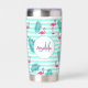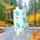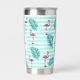 Rosa Flamingo Minze grüne Streifen Palmen Blätter Thermobecher