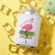 Behalt deine konservierten Getränke cool mit dieser lustigen kann kühler. Die Vorderseite und die Rückseite sind mit einem rosafarbenen Flamingo versehen, das auf einem Bein vor einer Reihe von Palmen stehend ist. Auf der Vorderseite steht der rosa gebogene Text "JUST CHILLIN'". Auf der Rückseite kann der Textbereich mit einem Namen angepasst werden. Alle Textbereiche und die Hintergrundfarbe können angepasst werden.