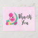 Ein Party dankt Ihnen postcard ein skurriles zeichn eines heißen rosa Flamingo mit Wassermelonen und Ananas. Summerisch und tropisch. Der Hintergrund ist hellrosa. Personalisierte Meldung auf der Rückseite.
