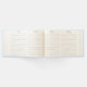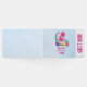 Ein Gästebuch im Art Deko Stil. Entworfen mit einer niedlichen Illustration eines rosa Flamingo mit einigen Wassermelonen und Ananas. Rosa und grüne Farbe. Summerisch und tropisch. Der Hintergrund ist ein hellblaues Aquarellbild.