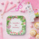 Die Teller der Geburtstagsfeier dieser lustigen Girl's zeigen ein rosa Flamingo-Thema. Die Aquarellbilder sind üppig tropisch mit rosa Blume und einem rosa Flamingo als Rahmen. Personalisieren Sie diese niedlichen Party-Teller mit dem Namen des Kindes.