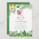 Tropische Laubmädchen schlendern und sehen Einladung mit einem rosa Flamingo mit eleganter Handschrift Typografie, die auf Ihre Veranstaltungsspezifikationen zugeschnitten ist.