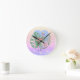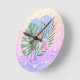Rosa Flamingo tropische Blattpalme Runde Wanduhr