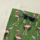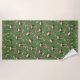 Dieses hübsche, ursprüngliche Flamingomuster hat eine retro Kunst-Deko-Drehung mit einem geometrischen Motiv. Gemacht in den hellen Schatten des Rosas, umfaßt Grün und Grau auf einem Feld von dunkelgrünem, dieses elegante, tropische Muster auch Farnwedel. Personifizieren Sie dieses Badetuch mit Ihrem Namen. Wenn Sie die Textschablone benutzen, erscheint Ihr Name an beiden Enden des Tuches (umgedreht an der Spitze, für einfache Betrachtung, während Sie ein Sonnenbad nehmen). Gehen Sie zum Strand in der Art mit diesem schönen Flamingotuch voran!