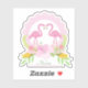 Dieser hübsche Kontur-Aufkleber verfügt über zwei rosa Flamingos, die sich zum Schnauzen gegenüberstehen. Die Vögel befinden sich in der Mitte eines rosa Kamelzirkels mit einer Blumenstruktur aus rosa Hibiskus. Ihr Name ist grün unter dem Blumenbild. Viele dekorative Zwecke; es liegt an Ihrer Fantasie!