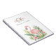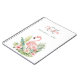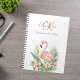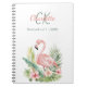 Ein stilvoller weißer Hintergrund mit rosa Flamingo, tropischen Blume und Blättern. Personalisieren und fügen Sie einen Namen und Ihre Monogramm-Initialen hinzu.