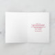 Ein wunderliches tropisches Weihnachten danken Ihnen - gefaltete Grußkarte. Eine rosa und grüne Zuckerstange striped Hintergrund. Über Spitze überlagert ein extravaganter rosa Flamingo mit einem Bein, das oben angehoben wird. Tragen einer rosa Weihnachtsmannmütze und etwas Saisonstechpalme. Stechpalme mit Beeren verzieren auch die Ecken. Ein Blumenstrauß über ihrem Kopf mit den Zuckerstangen zusammen gekreuzt.