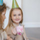 Ein niedlicher exotischer Flamingo mit Kronen und Blume auf hellrosa Hintergrund