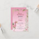 Rosa Flamingo und Blume zum Geburtstag Einladung