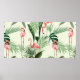 Rosa Flamingo und exotische Blume, Blätter aus Pal Poster