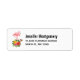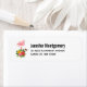 Adressetiketten mit einer niedlichen digitalen Abbildung mit einem rosa Flamingo mit einem Bein. Stehend auf einem Strauß mit tropischen Hibiskus Blume und Blätter. Ein hübscher Schmetterling schwebt um die Blume herum.