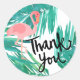 Rosa Flamingo vielen Dank auf tropischen Blätter Runder Aufkleber