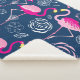 Grafisches Muster von rosa Flamingos auf dunkelblauem Hintergrund Grafisch-rosa Flamingos heben sich vor einem dunkelblauen Hintergrund hervor. Rosa Flamingos Walzer auf einer tiefblauen Bühne der Kunst. Abbildung, nahtlos, Dekoration, Natur, Garten, Schwarz, Blätter, Silhouette, Urlaub, Rosa, zeichnend, Vögel, schön, Form, neu, Saison, Dekoration, exotische, Flamingos, Oberfläche