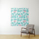 Rosa Flamingos, grüne Blätter aus Palmen, tropisch Wandteppich