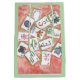 Originelle Aquarellbilder mit rosa Sherbet-Fliesen ergänzen das Mahjong-Dekor.