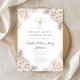 Rosa Floral Gold Cross Religiöse Erste Kommunion Einladung