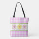 Freuen Sie sich auf die bunte Tasche mit hübschen rosa und gelben Blumen, ein klassisches Gingham-Muster, trendige, geschliffene Randrahmen, spielerische Polka-Punkte und ein individualisierbares Monogramm. Ändern Sie den Namen, um ein einzigartiges Geschenk zu schaffen, das für Mädchen, Jugendliche und Frauen gleichermaßen geeignet ist. Ob für einen Tag mit Freunden oder für einen Wochenendaufenthalt, diese vielseitige Tasche wird jedem Frühjahr- oder Sommerensemble eine personalisierte Touch von Farben verleihen.