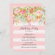 Einladung zum Geburtstag mit rosa Rosendesign und rosa Streifen Aquarell.