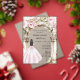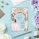 Ein klarer, transparenter Hintergrund. Ein großer Marmorbogen mit rosa Blumen. Ein Mädchen mit einem hellrosa Kleid. Personalisieren und fügen Sie einen Namen und Details.