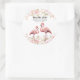 Rosa florale Elegant Flamingo Baby Dusche Runder Aufkleber