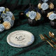 Die Blue Floral Gothic Baby Shower Rock a Bye Baby Paper Teller verfügen über ein handgezeichnet Viktorianisches, in Spinnweben gerahmtes Rockpferd mit blauen Blüten, Fledermäusen, Raben und Sternen, alles auf einem Vintagen, alten Papiergrundstück und einem schwarzen Rand. Passen Sie Ihre Veranstaltungsdetails an. Diese Teller sind perfekt für eine gotische Babydusche, ein Viktorianisches Kinderzimmer oder eine Halloween-Babydusche geeignet und sorgen für eine einzigartige Touch in der Tischdekoration.
