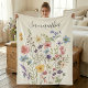 Hübsch rosa Blumenvliesdecke mit personalisiertem Namen. Feine Aquarell-Wildblume. Einfach den Text ändern.