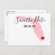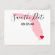 Maßgeschneiderte Florida Staat Kartenform mit Save the Date Design. Passen Sie die hellrosa Grafik an, um Ihre Hochzeitsfarbenpalette anzupassen. Lass deinen Freunden und Verwandten den Ort deiner Hochzeit mit einem Herztextsymbol, das du bewegen kannst. Bewegen Sie den Text nach vorne, um das Ziel zu erreichen. Die modernen und eleganten Kalligraphie-Schriftart-Stile sind individuell anpassbar.