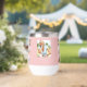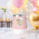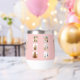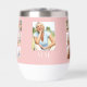 Ein rot-rosa Hintergrund Personalisieren und fügen Sie eine 7-Foto-Collage, Monogramm-Initialen und vollständigen Namen hinzu. Weißer Text.
