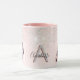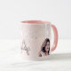 Eine mit Monogramm Tasse, mädchenhaft und trendig. Weiblich blütenrosa, goldene Rose mit Imitaten verziert mit Glitzer silber. Personalisieren und fügen Sie einen Namen und einen Monogrammbuchstaben hinzu. Fügen Sie Ihr eigenes Foto x 2 hinzu. Schwarz-Graue Buchstaben. Der Name ist mit einem modernen handgeschriebenen Stilskript geschrieben.