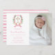 Dieses zauberhafte Foto mit blühenden Blumen lädt zu einer Taufe ein, um Ihre Familie und Freunde zu einem Taufen zu einladen. Es hat ein rosa mit Monogramm Aquarellfarben-Wappen mit einem goldenen Kreuz, umgeben von Grün und Rose, Ihrem Freudenbündel mit Vornamen und einer koordinierenden rosa Aquarellfärbung, die rückwärts gestreift ist. Es ist einzigartig und wertvoll, genau wie Ihre kleine Prinzessin.