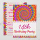 Geburtstagsparty Einladungen mit einem psychedelischen hippy-Style Fraktal Muster in pink türkis und gelb.Drücken Sie die orange Schaltfläche "Anpassen" oben, um das Element anzupassen und personalisieren Sie es durch Auswahl eines anderen Stils, ändern Sie die Farbe und Größe oder fügen Sie Ihren eigenen Text und Bilder.