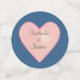 Rosa Frangipani Plumeria Blume und Herz auf der blauen Hochzeitstisch Confetti. Text kann für Hochzeiten, Geburtstage und Geburtstage personalisiert werden. Frangipani Blume stehen für Schönheit und vollkommene Liebe.